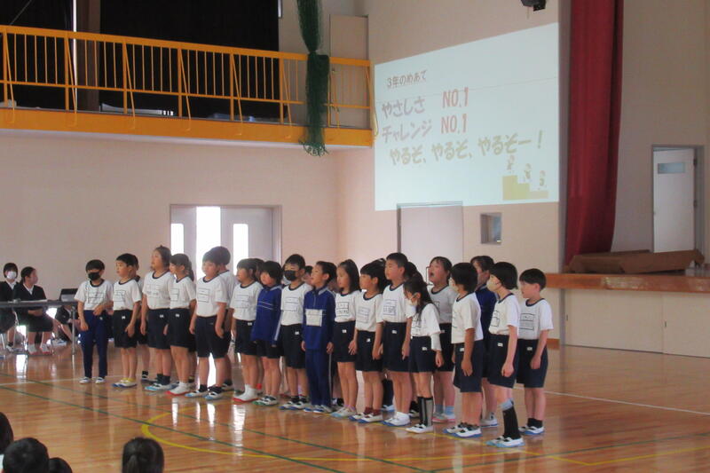 1年生も、「よろしくお願いします。」と元気よく発表することができました。上級生の姿を見て、真似ることが、学びになっています。