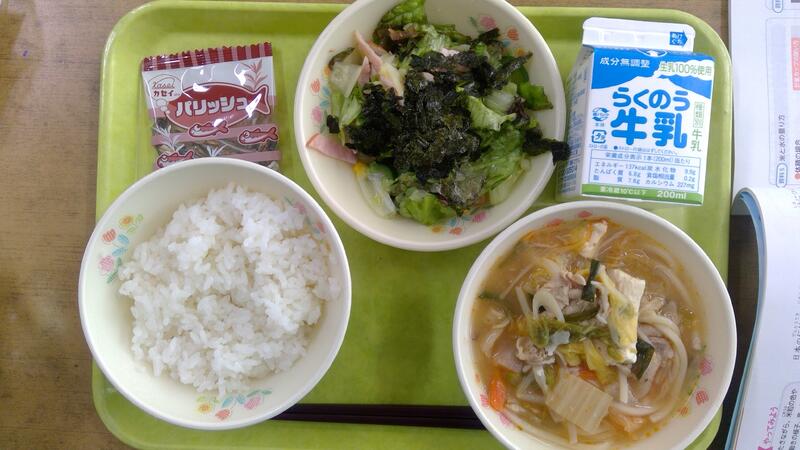 22日(月)の給食は、林田さんのごはん、キムチ鍋、チョレギサラダ、一食いりこでした。キムチ鍋は寒い冬にぴったりのメニューです。キムチ漬けは給食用で辛さ控えめですので子どもたちも「辛くなかったからよかったです。」と笑顔でした。