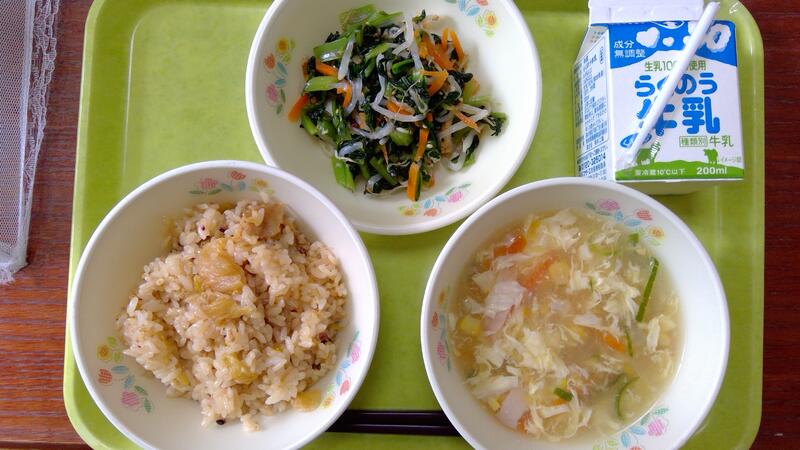 今日の給食は、雑穀キムチごはん、小松菜サラダ、ユイミータンでした。キムチごはんには十五穀米を入れて、ビタミン、ミネラル、食物繊維を強化しました。小松菜は鉄分を含む野菜です。いよいよ明日は中体連。松島中のみなさんの健闘をみんなで祈りましょう!