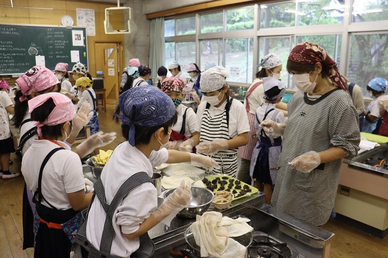 今日の午前中、3年生が地域の料理名人の7人の方を講師としてお迎えし、サツマイモを使った郷土料理づくりを体験しました。