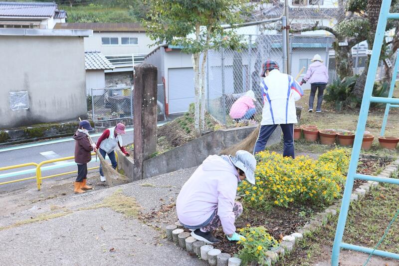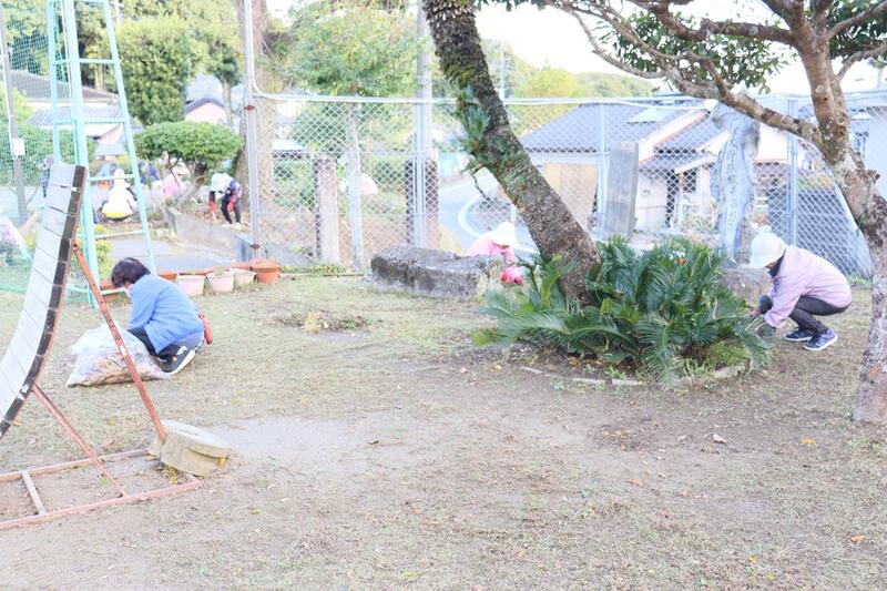 今朝、上天草市ボランティア連絡協議会の30人ほどの皆様が、敷地内の草取りや落ち葉掃きをしてくださいました。皆様のおかげで、とてもきれいな環境になりました。
