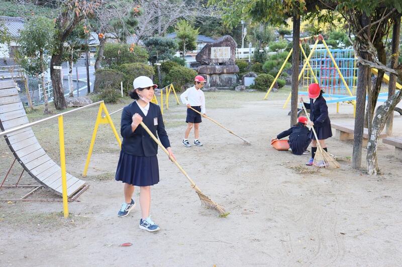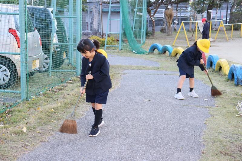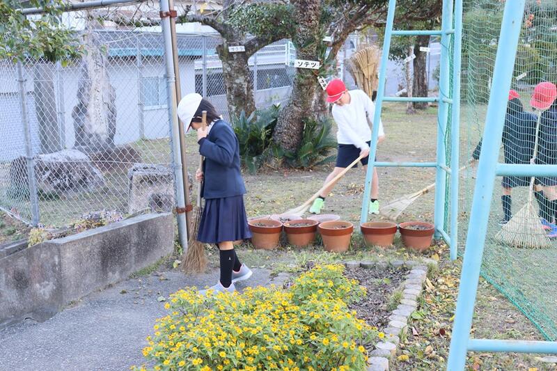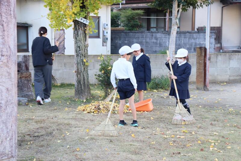 今朝も、運動場の落ち葉掃きを頑張ってくれました。