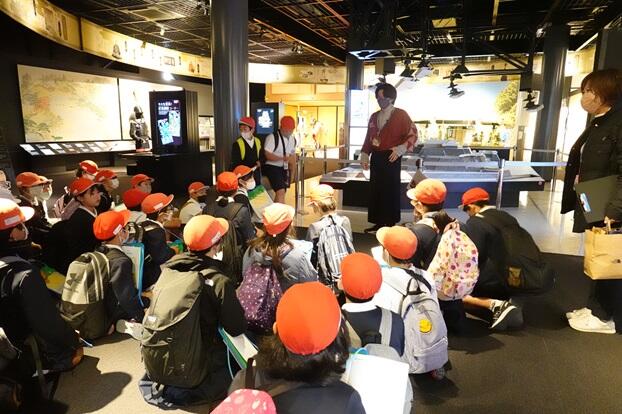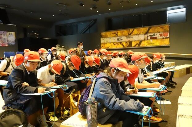 ミュージアムわくわく座では、熊本城のことについて、映像や展示品を基に学びました。