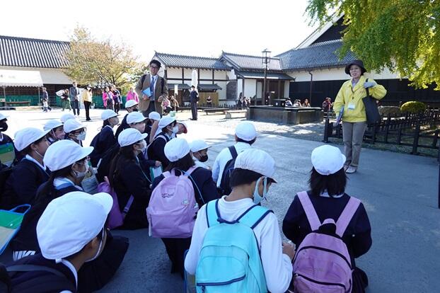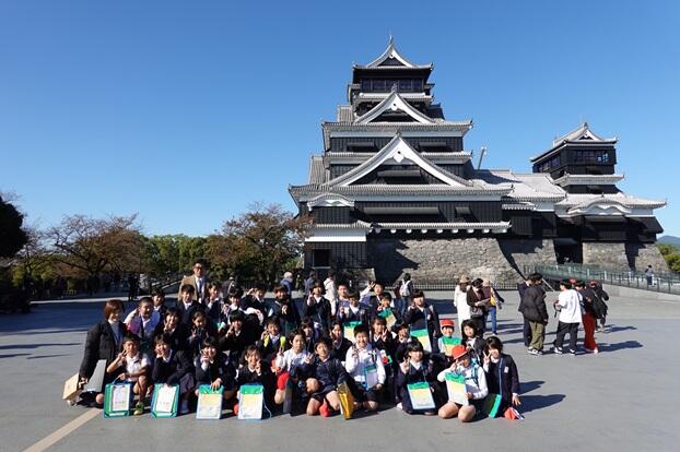熊本城では、熊本地震から復興途上のようすや、城のつくりや歴史等を深く学ぶことができました。