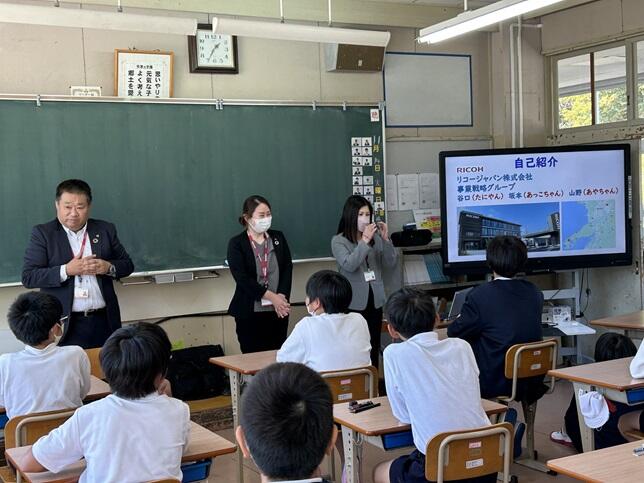 今日の3・4時間目に5年生、5・6時間目に6年生が、リコージャパンの3人の皆様を講師としてお迎えし、SDGsに関する講話で学びを深めました。