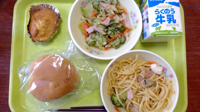 今日の献立は、鶏釜飯、真鯛のレモンカツ、ポン酢和え、けんちん汁でした。真鯛のレモンカツは、愛媛県産の真鯛に瀬戸内産のレモンが良いアクセントになっていました。1年生の子どもたちも「レモンの味がします!」と気づいていました。