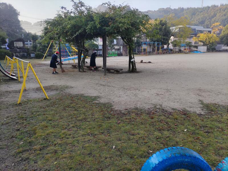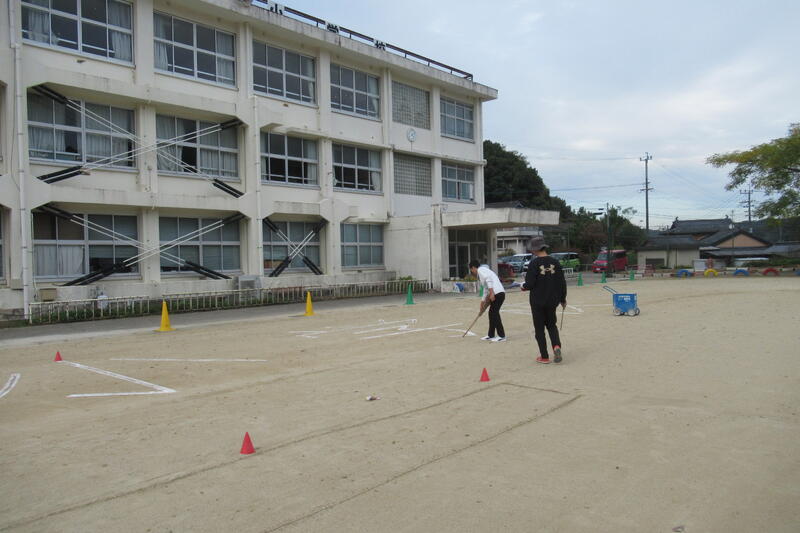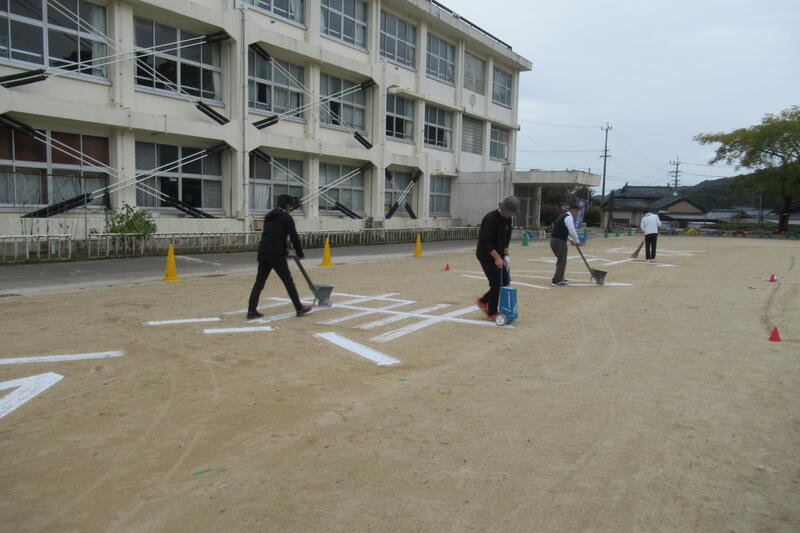 先週、撮影に向けて、婦人会や民生委員、社会福祉協議会のみなさまが運動場を美しく整えてくださいました。