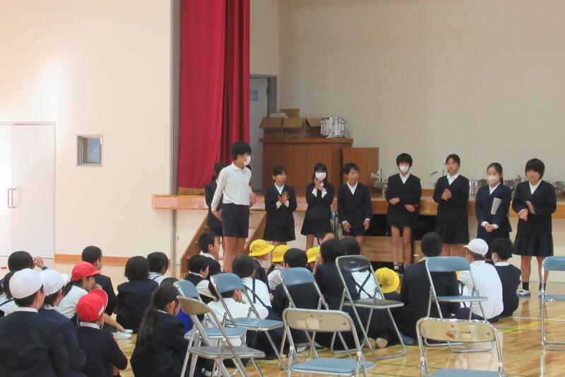 終わったら、普段の児童集会のように感想発表を行っていました。
