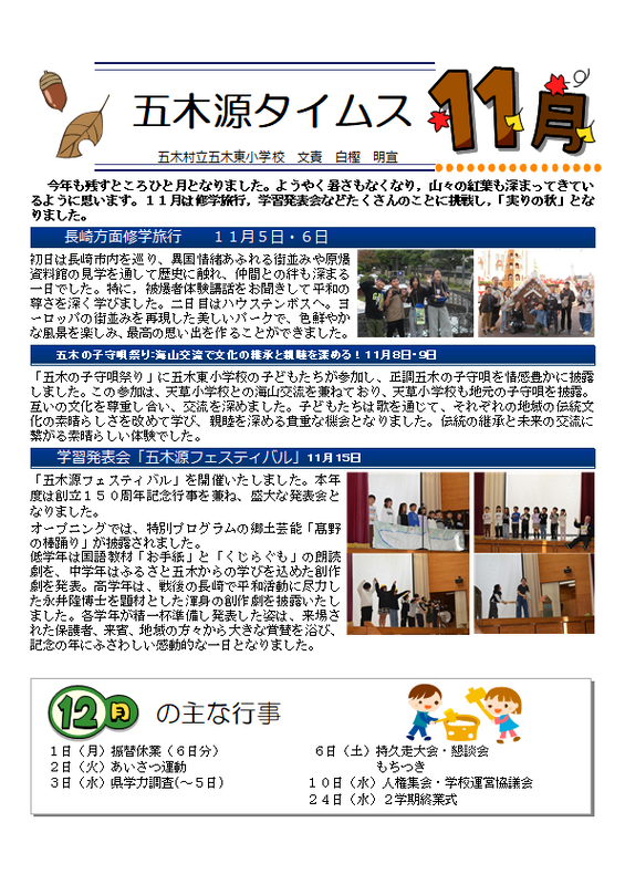 ◆ 五木東小だより(第11号).pdf(11月18日発行)