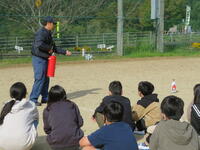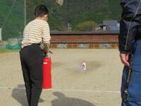 子どもたちは、落ち着いて避難し、真剣に取り組む姿が見られました。また、北分署の方よりご指導やご助言をいただき、水消化器を使った消火訓練も行いました。