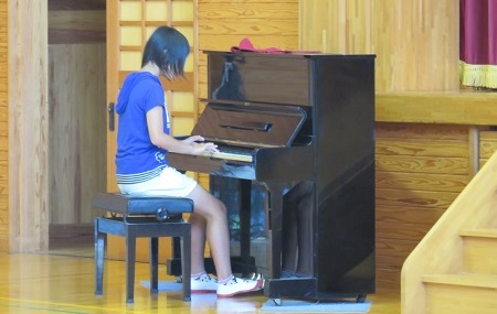 6年生のピアノ演奏にあわせて、校歌を歌いました。