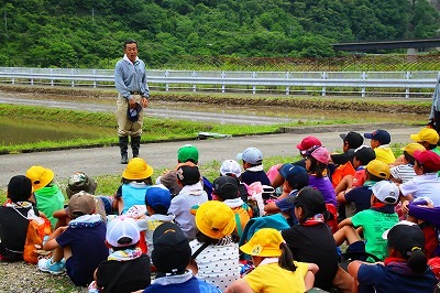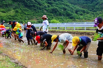 感謝の気持ちを高めることを目的として田植え体験を行いました。