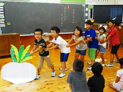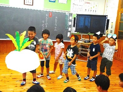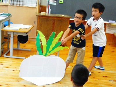 今日は『おおきなかぶ』の音読劇発表会が行われました。