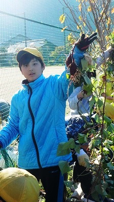 班に分かれて頭地周辺のごみを拾ったり落ち葉を掃いたりしました。