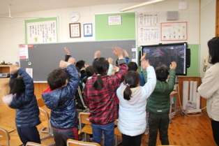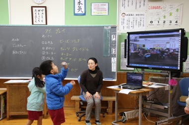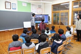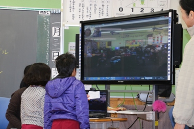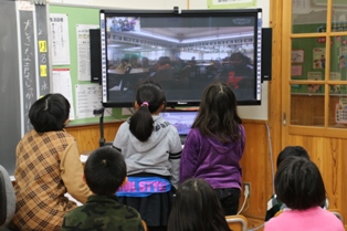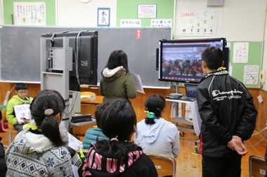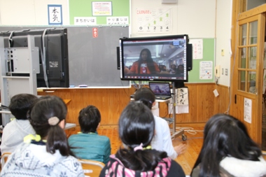 ハワイの小学校の学校生活の様子を尋ねたり、五木東小学校の3年生の時間割を紹介したりしました。
