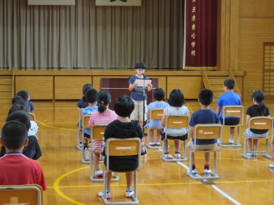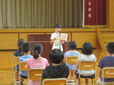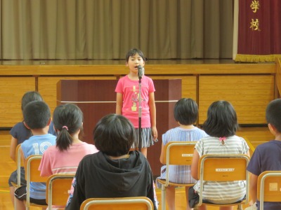 1学期の終業式を行いました。学年の代表の児童が1学期にがんばったことや夏休みに楽しみにしている事などを発表しました。事故なく、楽しい夏休みにして、2学期の始業式に元気いっぱいで登校してほしいです。