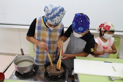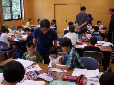 今年度も夏休みのびのび子ども教室が始まりました。さっそく開講式を行い、学習会で友だちや先生たちと一生懸命勉強しました。「親子ハッピークッキング」で楽しく昼食を作り、おいしく食べることができました。
