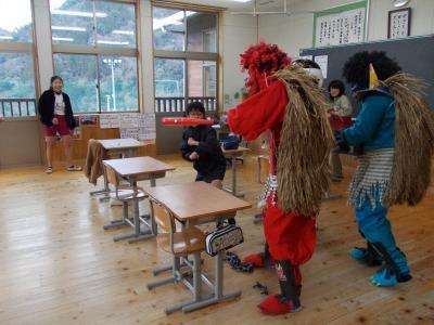 立春を前に、今年も五木東小学校に「オニ」がやってきました。