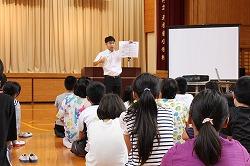 引き続き行われた終業式では、田代校長から、夏休みも「いつき」を合い言葉に過ごすことや、「命を守ることを一番に、交通事故、水の事故等に十分気をつけて安全で充実した夏休みにしてください。」と結ばれました。