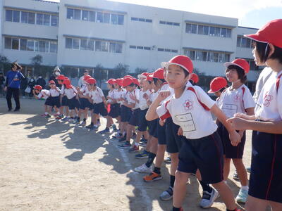 1年生と6年生、2年生と5年生、3年生と4年生がペアになって、なわとび大会を行いました。互いに数えたり励ましたりしながら、持久跳びと記録跳びに挑戦しました。