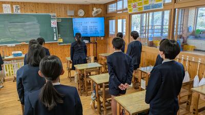五和中学校の体育館で、小学校児童会と中学校生徒会による対面式を行いました。発表された今年度の合同スローガンは、「みがくあいさつ 広がる笑顔」です。「五和といえばあいさつ」と誇れるように、児童会生徒会心をひとつにあいさつを磨いていきましょう。