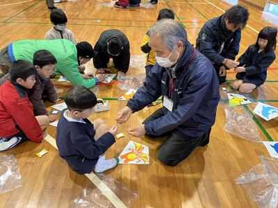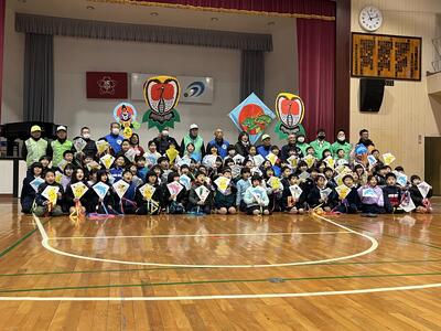 天草地区少年警察ボランティア連絡協議会と「天草凧の会」の皆様のご協力により、1、2年生の子供たちが凧づくりに挑戦しました。大きなバラモン凧を見せていただき大喜びでした。お世話になった皆様、貴重な体験をありがとうございました。