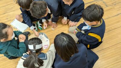 4月に入学予定のお友だちを招待して新1年生体験入学を行いました。1年生と5年生が一緒にゲームなどで楽しい時間を過ごしました。五和小みんなで、ご入学を楽しみにしています。