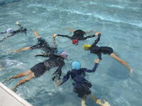 はじめに各学年で水慣れを行った後,記録の測定を行いました。今年度から,ブロックごとに各小学校が集まって記録を測定する「天草郡市小体連水泳記録会」を行わないことになりましたので,「タイム(速さ)」ではなく「距離(泳力)」を測定していきました。
