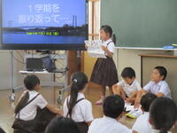 開式の言葉の後,各学年の代表が「1学期にがんばったこと・できるようになったこと」「もう少しがんばりたかったこと」「夏休みに挑戦してみたいこと」の3つを,シートを見せながら発表しました。