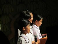 この日に向けて,夏休みに入ってすぐの3日間,子ども芸術祭2025inオールあまくさ実行委員会事務局の方々と打ち合わせや練習を行いました。また,7月29日(火)と前日には会場である天草市民センターに行って,リハーサルを行いました。
