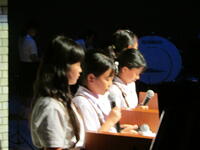 始業式が始まる前に,2学期から本校に赴任された2人の先生を紹介しました。その後,各学年の代表の子供が「夏休みの思い出」「夏休みにがんばったこと」「2学期にがんばりたいこと」を発表しました。