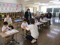 4月18日(金)に,本年度最初の授業参観・PTA総会・学級懇談会を行いました。この日は,本校の学校運営協議員の小林様にもお越しいただき,子供たちの学習の様子を見ていただきました。