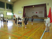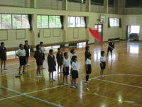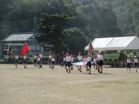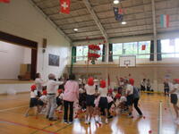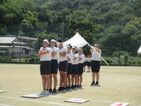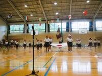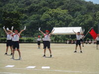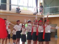 その後,紅団と白団に分かれて向かい合い,運動会のテーマ曲を歌いました。すごく大きな声が出ていて,子供たちのやる気を感じました。