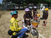 4月24日(木)に,維和っ子たちの交通事故防止を目的とした「交通教室」を行いました。今回は,上天草警察署や植田サイクル様,地域の交通安全協会の方々のご協力もいただきながら,より実践的な内容で実施しました。