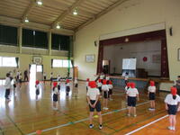 学校運営協議会委員の皆様をはじめとするたくさんのご来賓をお迎えして,いよいよ本年度の維和小学校の運動会が始まりました!残念ながら雨が降っていましたので,旧維和中学校の体育館を会場にしました。