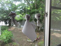 この日の昼休みに,1・2年生の子供たちが校長室を訪ねてきて,てるてる坊主を飾ってくれました。