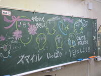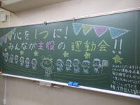5月17日(土),教室の黒板に書かれた熱いメッセージが,そのときが始まるの静かに待っていました。