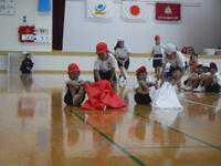 開会式が終わった後,前半は各学年の徒走や団体競技を行いました。「チェッチェッコリ玉入れ」には,ご来賓の皆様にも参加していただきました。全校児童による表現「Rock Iwa Party☆☆☆」では,躍動感のあるダンスと力強いソーラン節を披露しました。