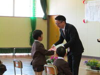 今年度の新入生は5人です。式では,はきはきとした元気のよい返事と姿勢よく話を聞く態度がとても立派でした。また,予定になかったアドリブにもしっかりと対応してくれました。