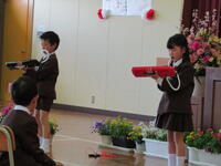 新入生を迎える上級生も,温かい眼差しで式に参加してくれました。特に「児童代表お迎えの言葉」を担当した2人の2年生は,小学校でできるようになったことを,実演を交えながら分かりやすく発表してくれました。