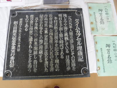 今回11月30日の記念式典において、その一部を校舎内に展示予定です。ぜひ、当日来校の上、ご覧いただければと思います。