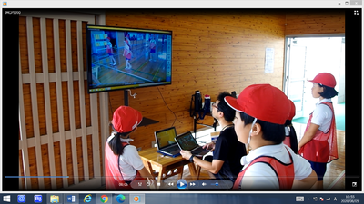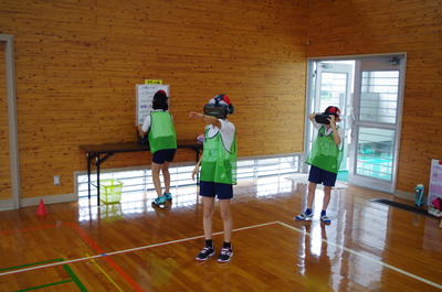ゲームを360°カメラで撮影した。その映像を次の時間の作戦タイム時に自分たちの動きを確認するために活用した。360°を2画面で見ることができるため、攻撃側と守備側の両方を確認することができる。自分たちの動きを見ながら、課題を見出し作戦に生かすことができた。
