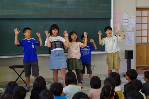 3月14日(水)、2月26日より約2週間、本校でボランティアとして様々な活動を支援していただいた大塚様とのお別れ会を行いました。会では、児童代表のあいさつの後、全児童によるお別れの歌でお送りしました。