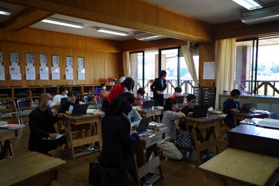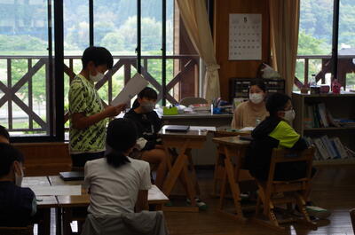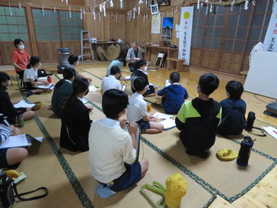 6月6日(月)、水上マンデーがありました。今回は岩野小学校の5・6年生が湯山小に行って、合同学習を行いました。5年生は「集団宿泊教室」に向けての事前学習会を、6年生は、ふるさとを知る「みずかみ学」の学習で湯山小近くにある神社へ出かけました。