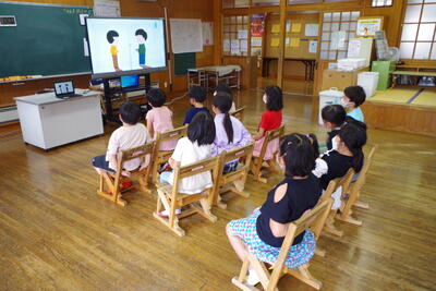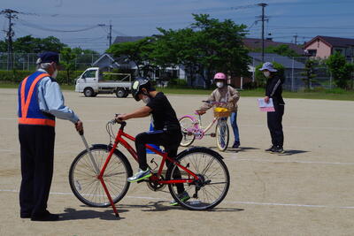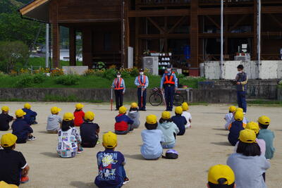 5月2日(月)、交通教室がありました。水上駐在所の上田様、交通指導員の森山様、山中様をお招きし、安全な道路横断の仕方や自転車の乗り方を指導していただきました。自転車点検も実施しました。「ブタハシャベル(ブ:ブレーキ、タ:タイヤの空気、ハ:ハンドル、シャ:車体、ベル:ベル)」の点検項目も教わりました。お家でも交通ルールの確認や自転車の点検をお子様と一緒にお願いします。