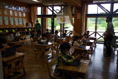 5月27日(金)、湯山小1・2年生との合同学習がありました。生活科(みずかみ学)の学習で、「ほいほい広場」に出かけました。自己紹介をした後は、虫をつかまえたり、遊び場で遊んだり、タブレット端末で撮影したりと時間いっぱい活動できました。
