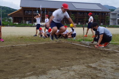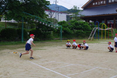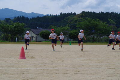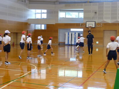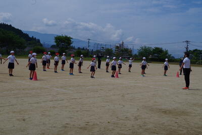 その後、水上中学校の高橋先生と5・6年生の合同体育を行いました。バトンパスの仕方を学び、リレーを全力でがんばる姿が見られました。