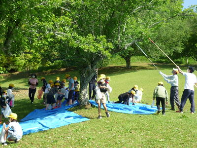 5月18日(水)、ほいほい広場へ梅ちぎりに行きました。