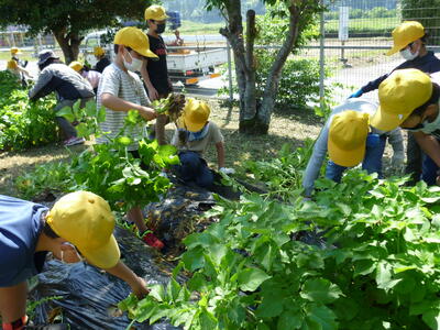 ほったジャガイモは、給食センターへ届けたり、5年生が家庭科の学習で使ったり、それぞれの家へ持ち帰ったりします。