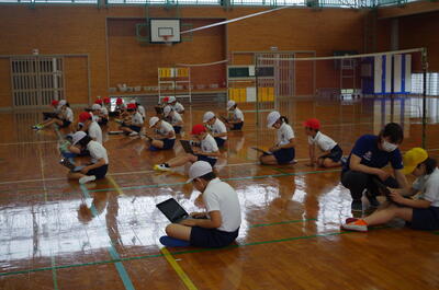 3・4年生 体育「キャッチバレー」ふりかえりの様子